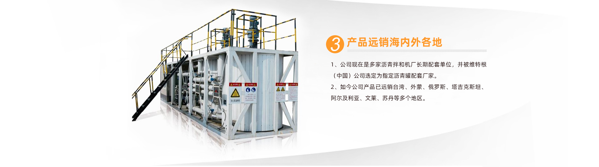 經(jīng)多年的努力,在行業(yè)內(nèi)已具有知名度及品牌影響力,獲得多家業(yè)內(nèi)企業(yè)的認(rèn)可,公司現(xiàn)在是多家瀝青拌和機(jī)廠長期配套單位,并被維特根(中國)公司選定為指定瀝青罐配套廠家。如今公司產(chǎn)品已遠(yuǎn)銷臺灣、外蒙、俄羅斯、塔吉克斯坦、阿爾及利亞、文萊、蘇丹等多個(gè)地區(qū)。 ...... 【查看詳情】